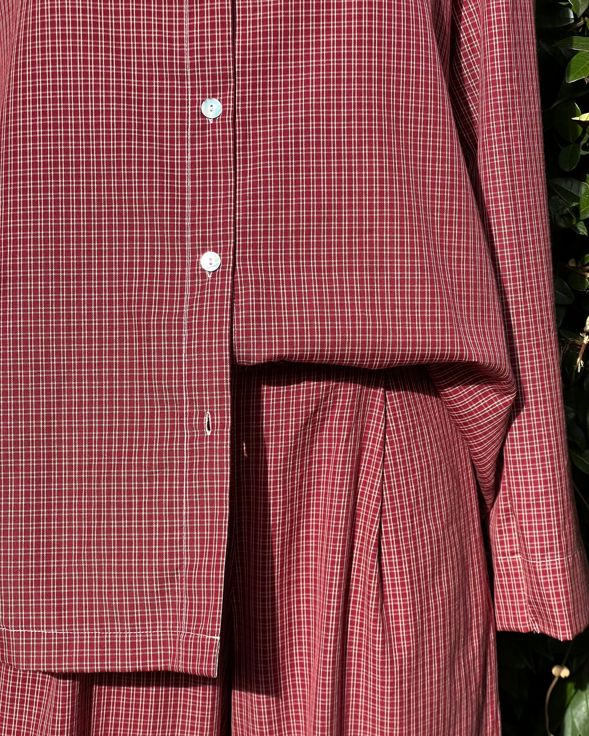 Cálido y reconfortante, el conjunto Fireside Full está confeccionado en nuestro cuadro country rojo arándano, un patrón suave y vibrante inspirado en el resplandor de las noches de invierno y la calidez de una chimenea crepitante. La camisa y los pantalones a juego crean un look clásico y armonioso, perfecto para noches acogedoras en casa.