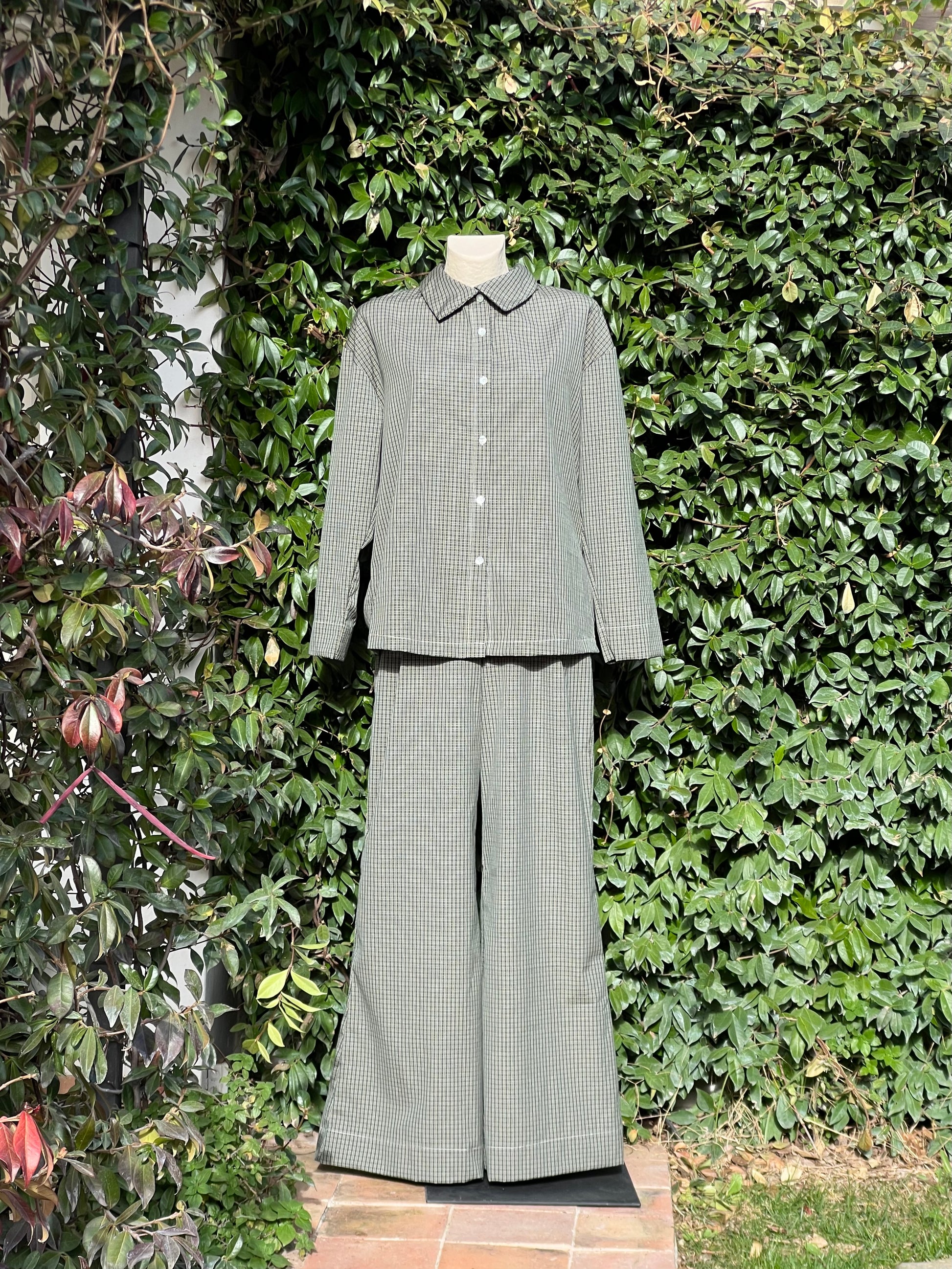 Fresco y discreto, el conjunto Forest Full está confeccionado en nuestro cuadro country verde bosque, un patrón suave y clásico inspirado en paseos tranquilos por los bosques de invierno. La camisa y los pantalones a juego crean un look armonioso y atemporal.